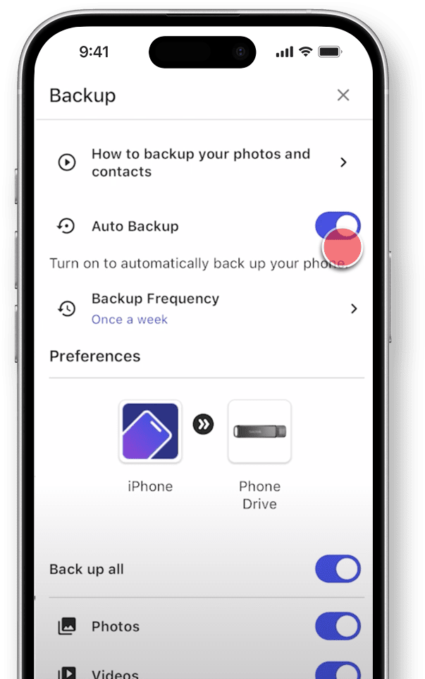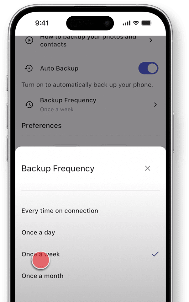 Configurez des sauvegardes pour votre contenu à intervalles personnalisés : chaque jour, chaque semaine, chaque mois ou chaque fois que vous branchez votre disque.