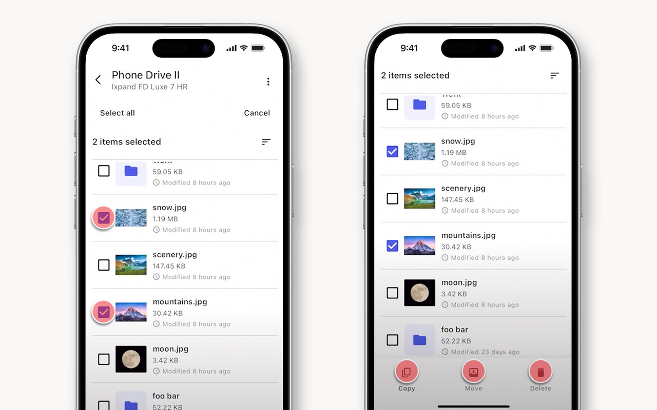- Sélectionnez chaque fichier que vous souhaitez gérer