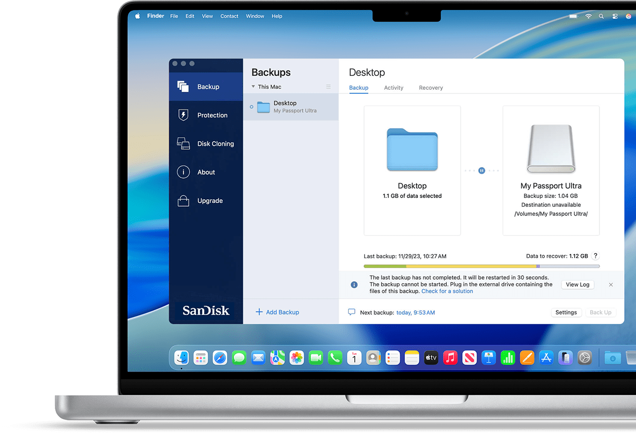 Our eligible Mac-compatible SSDs give you options for backing up with either Acronis True Image for Sandisk or Time Machine.